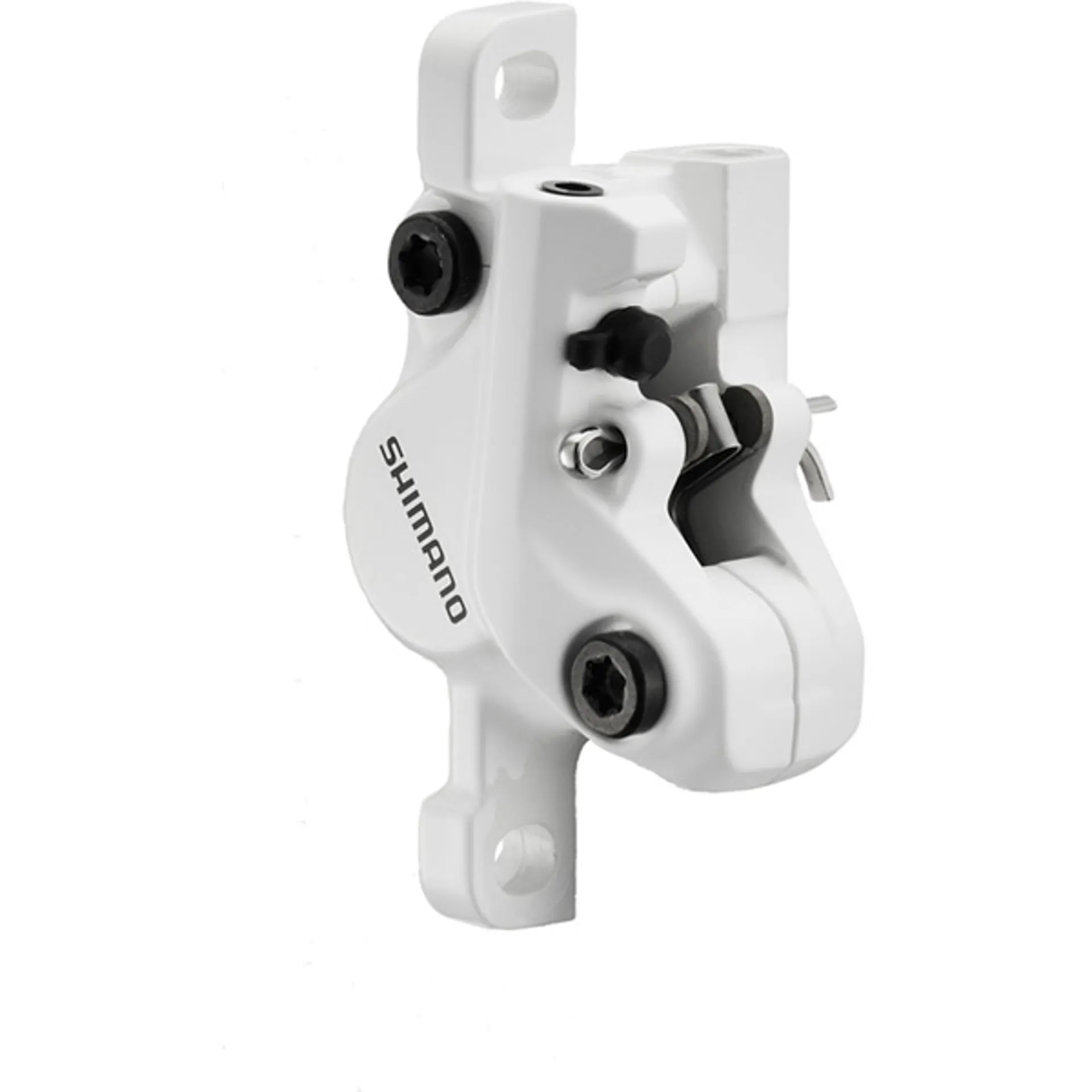 Shimano BR-M395 calliper, without rotor or adapters, post mount, front or rear, white; Quick, easy assembly and maintenance. Bleeding nipple position changed for ease of maintenance